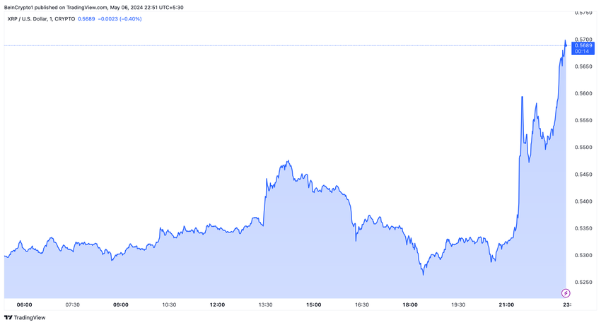 Lisääntyvä spekulaatio on johtanut XRP-hintojen vaihteluun, ja kryptovaluutta nousi hetkellisesti lähes 8 % 0,53 dollarista 0,57 dollariin.