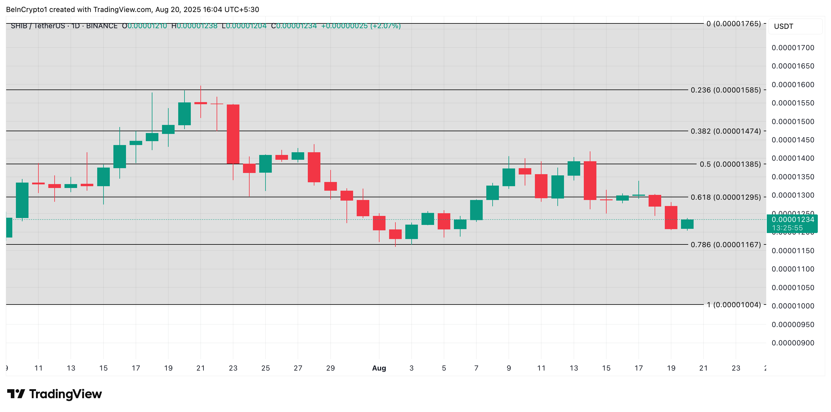 Meemikolikoiden markkinoiden hidastuminen on vetänyt Shiba Inun (SHIB) alas 11 % viime viikolla. Kirjoitushetkellä johtava meemikolikko käy kauppaa hintaan 0,00001234 dollaria.