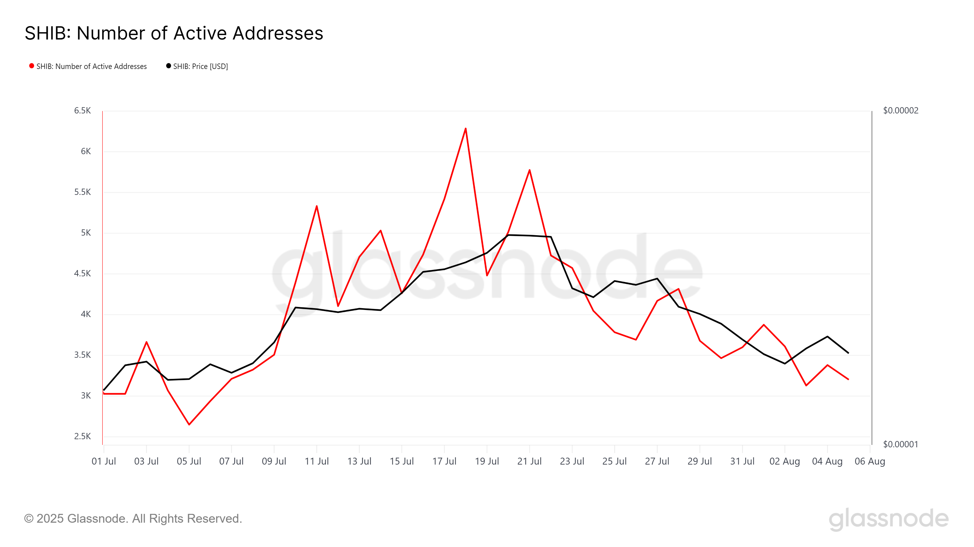 Uusien Shiba Inua käyttävien osoitteiden määrä on laskenut jyrkästi, mikä heijastaa sijoittajien kiinnostuksen hiipumista. Vain kahdessa viikossa uusien osoitteiden määrä laski 44 %, pudoten 2 059:stä 1 171:een.