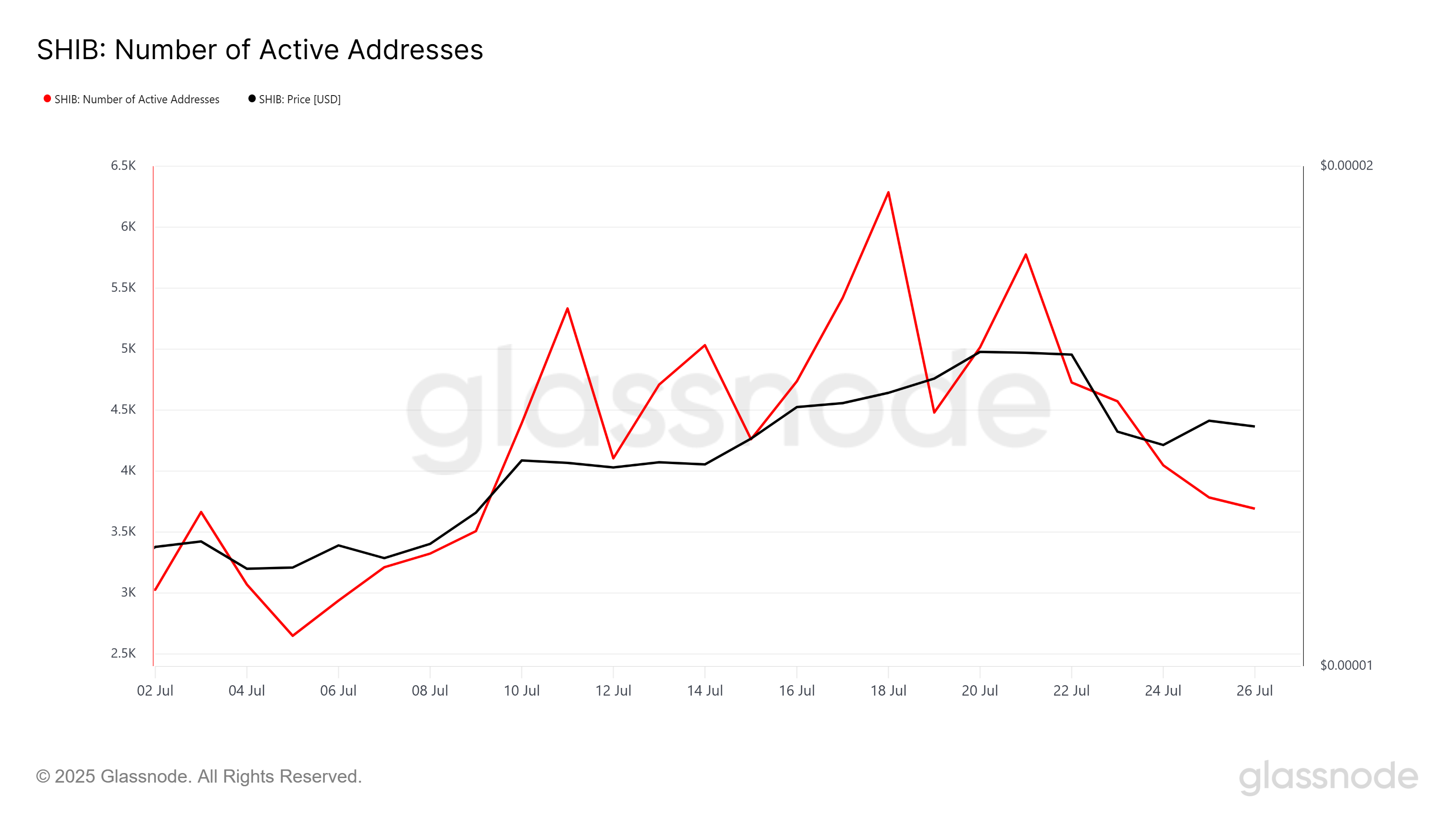Laajemmat markkinasignaalit kuitenkin viittaavat huolenaiheisiin. Aktiivisten osoitteiden määrä Shiba Inulle on laskenut 36 % viimeisen 48 tunnin aikana. Tämä osoittaa, että sijoittajat saattavat menettää toivonsa altcoinin nopeasta toipumisesta ja poistuvat nopeasti positioistaan.