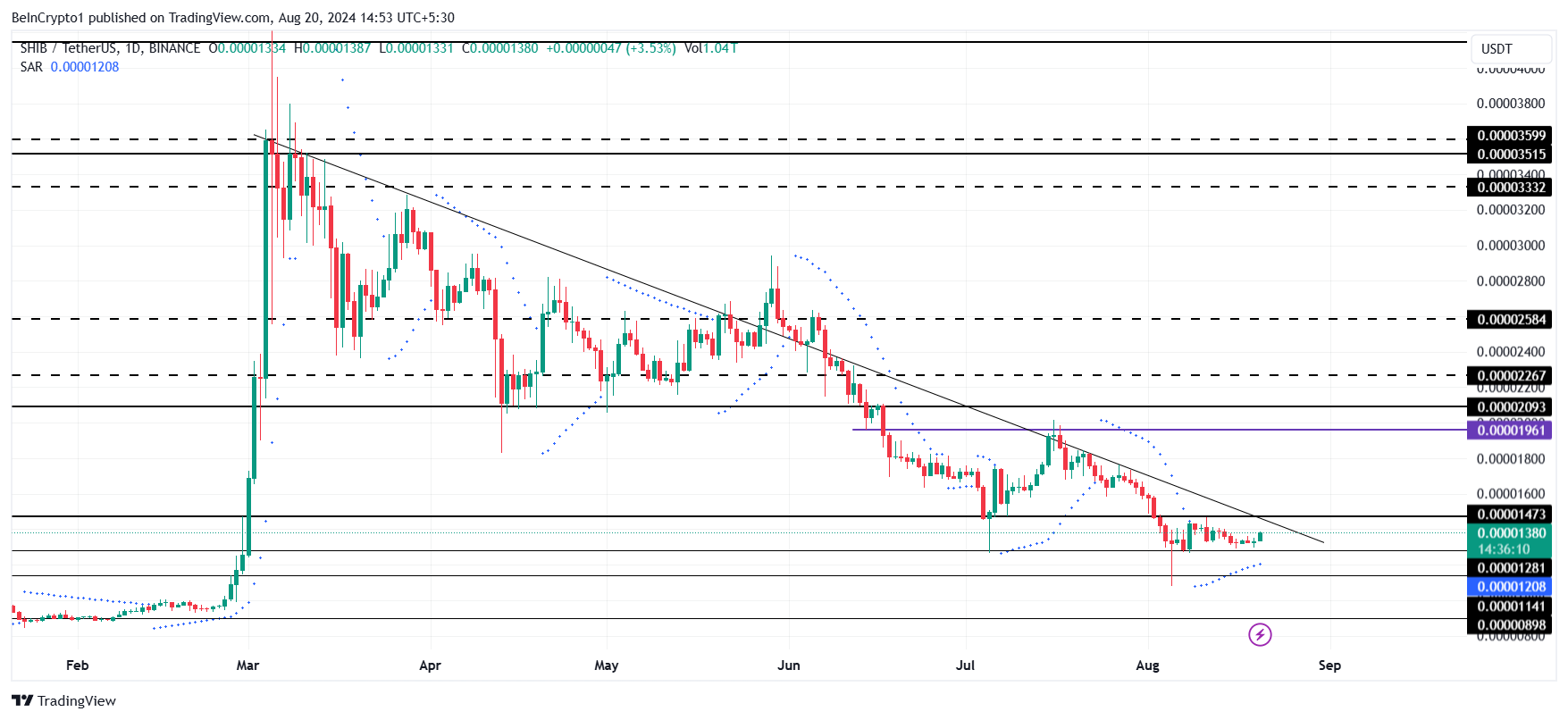 Shiba Inun (SHIB) hinta saattaa etsiä ulospääsyä laskutrendistä, mutta ei perinteisessä mielessä.