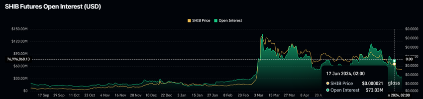 Viimeisen viikon aikana Shiba Inun avoin korko on pudonnut yli 50 %, 73 miljoonasta dollarista 34 miljoonaan dollariin. Tämä merkittävä lasku osoittaa huomattavaa muutosta sijoittajien käyttäytymisessä ja luottamuksessa.