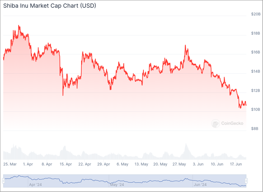 Lisäksi, kun markkina-arvo laskee, hinnat seuraavat. Maaliskuussa SHIB:n markkina-arvo oli CoinGeckon mukaan yli 18 miljardia dollaria. Lehdistöhetkellä sama markkina-arvo on 10,64 miljardia dollaria, mikä tarkoittaa, että arvo on laskenut hämmästyttävällä 8 miljardilla dollarilla.