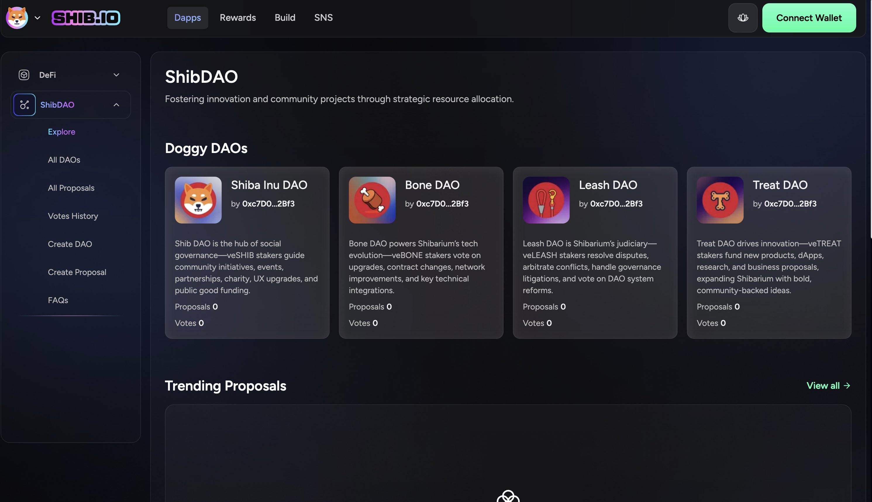 SHIB DAO valvoo yhteisöaloitteita, BONE DAO ohjaa protokollan kehitystä, LEASH DAO sovittelee sisäisiä kiistoja ja TREAT DAO rahoittaa dApp-innovaatioita ja ekosysteemin kasvua.