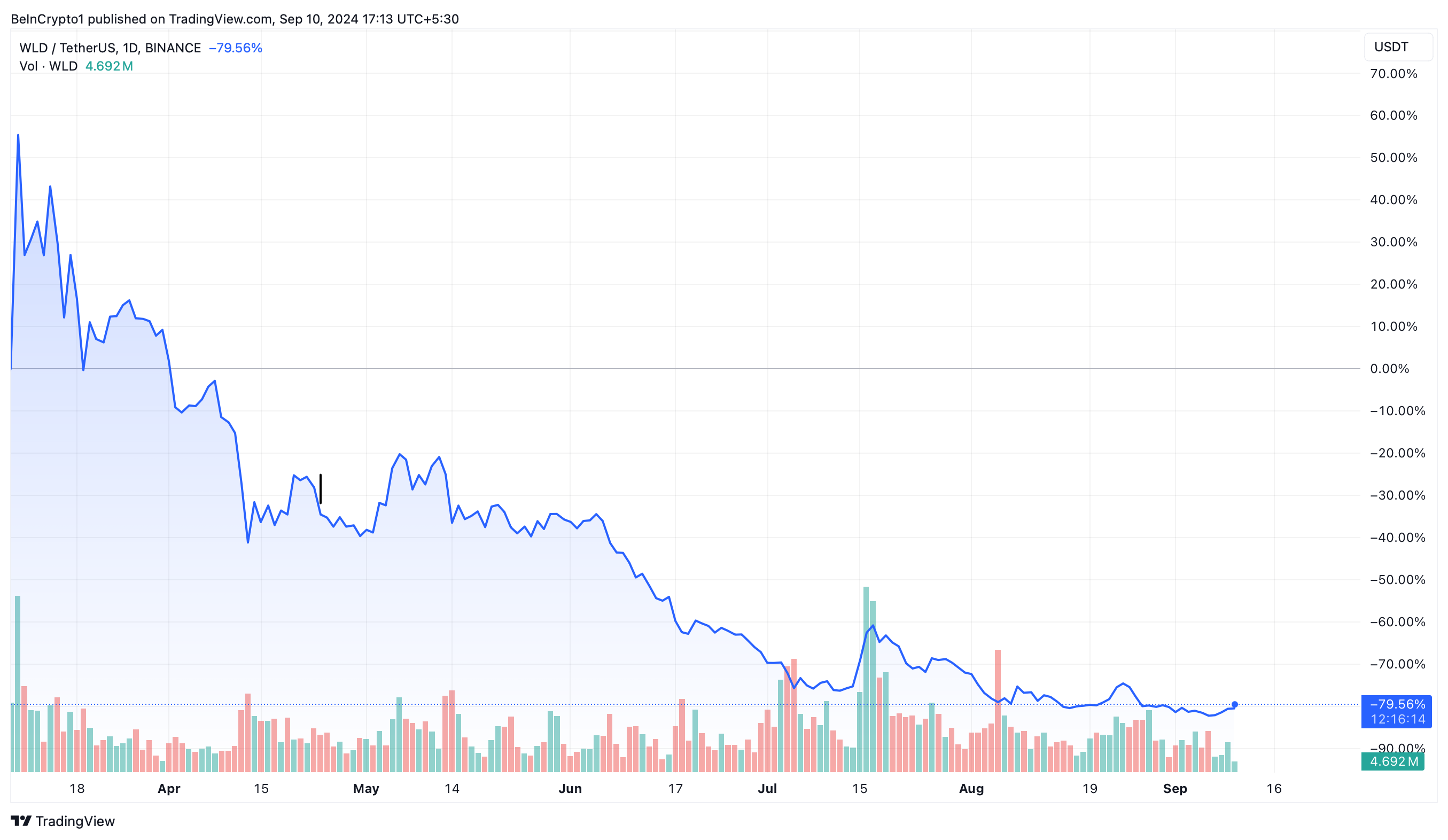Worldcoinin (WLD) hintaennuste. Lähde: TradingView