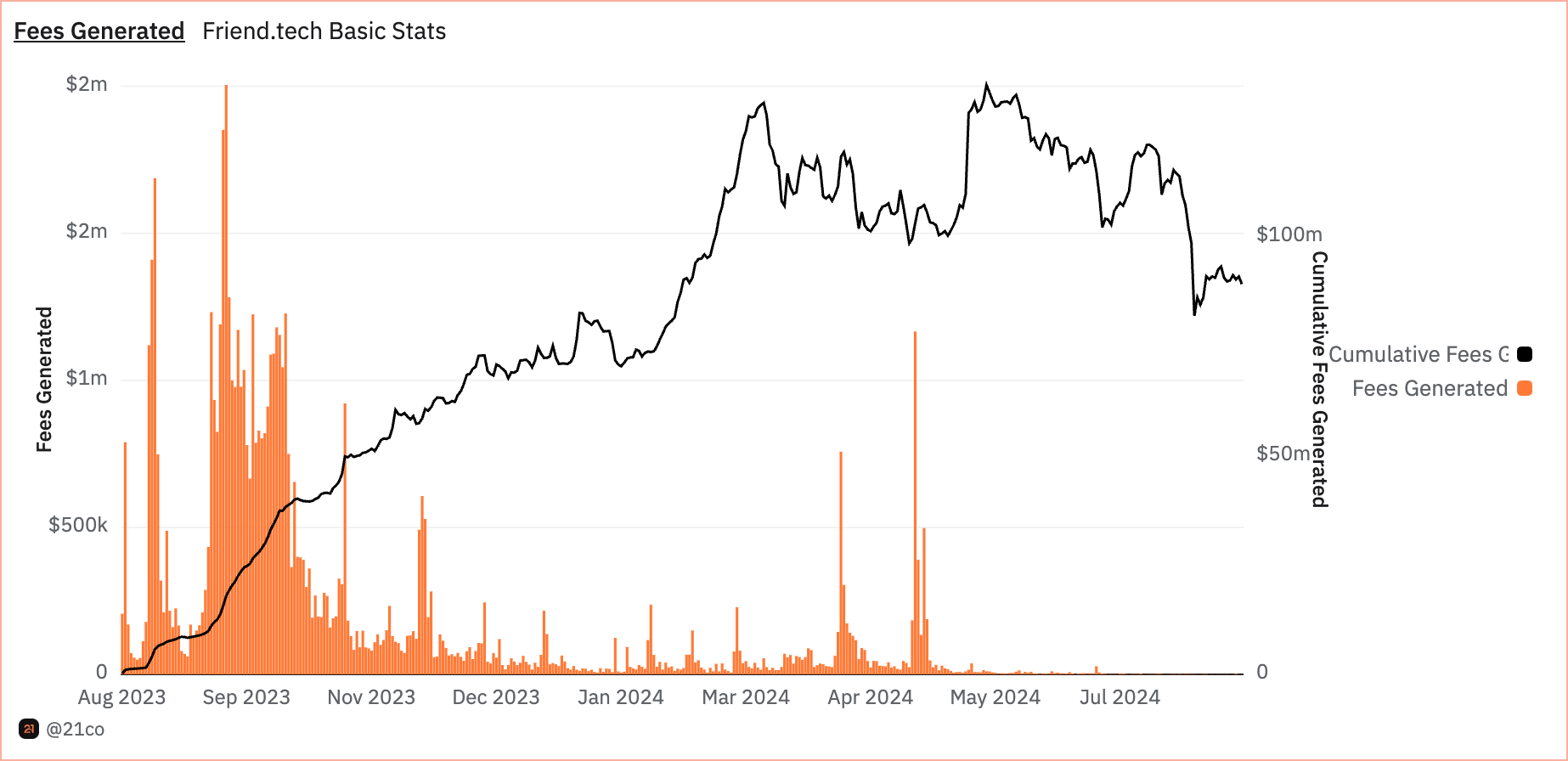 Samaan aikaan Friend.Techin tilanne toimii varoittavana esimerkkinä. Lanseerattu Base-verkossa elokuussa 2023, alusta alun perin houkutteli merkittävää kiinnostusta kryptoyhteisöltä, tuottaen yli 2 miljoonaa dollaria maksuina syyskuun 14. päivänä 2023. Kuitenkin nyt alustan maksutuotot ovat romahtaneet, ja viimeaikaiset tulot tuskin yltävät 71 dollariin.