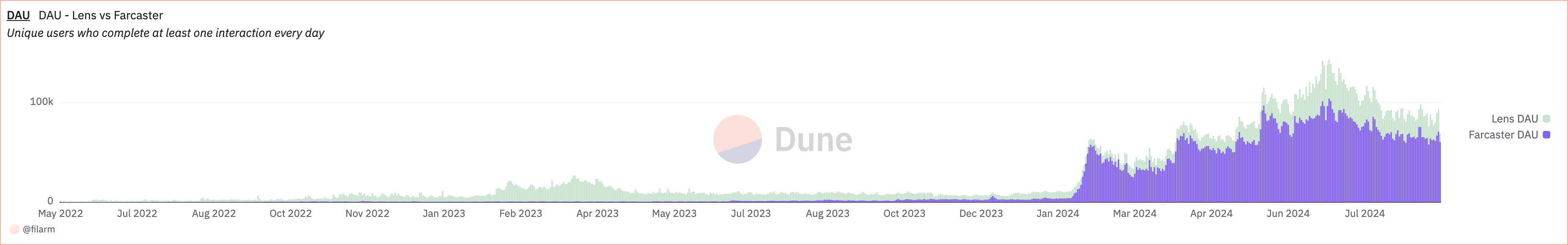 Samoin Lens Protocol koki jyrkän laskun käyttäjäsitoutumisessa. Yli 37 000 uuden käyttäjän rekisteröinnin jälkeen helmikuun 28. päivänä, määrä väheni vain 142:een syyskuun 8. päivään mennessä. Sen DAU:t myös laskivat, heinäkuun huipusta 42 281 vain 8 368:aan.