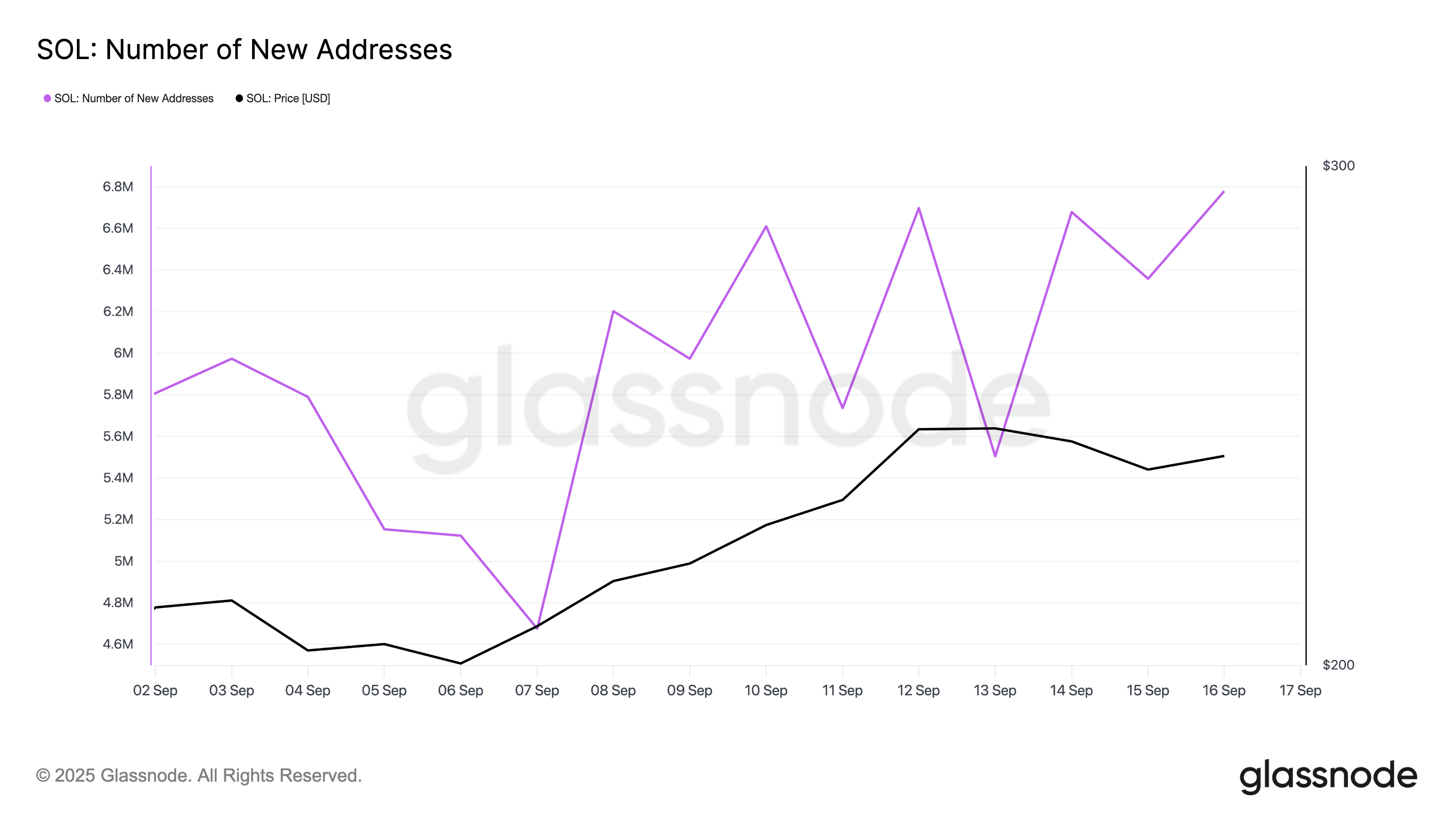 Glassnoden mukaan ainutlaatuisten osoitteiden määrä, jotka osallistuvat SOL-tapahtumiin ensimmäistä kertaa, on noussut 16 % viimeisen seitsemän päivän aikana.