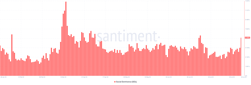 Kirjoitushetkellä Solanan sosiaalinen hallinta on 6,43%. Tämä nousu tarkoittaa, että hanke saa enemmän mediahuomiota kuin useimmat sadan parhaan kryptovaluutan joukossa markkinoilla.