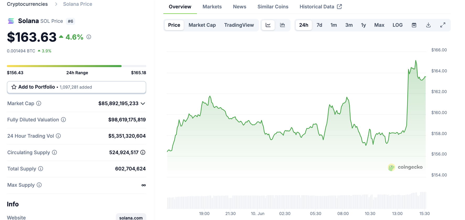 Luonnollisesti Solanan hinta reagoi hyvin näihin huhuihin, kasvaen yli 4,5 % tänään: