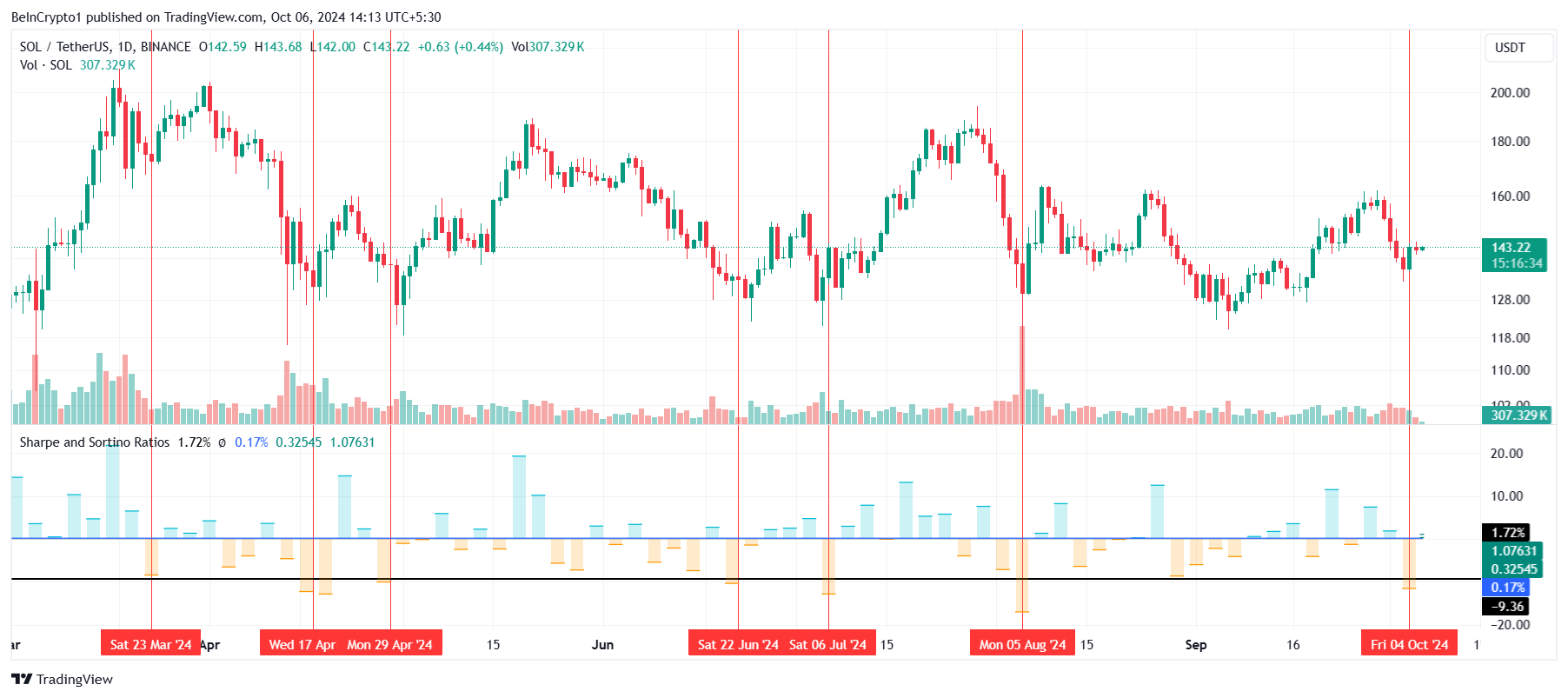 Historiallisesti negatiivinen Sharpe-suhdeluku on merkinnyt, että altcoin on yli-myynnissä, houkutellen ostajia ja nostattaen hintaa. Tämä kaava voisi toistua, tarjoten sijoittajille mahdollisuuden kerryttää SOL:ia ennen sen seuraavaa mahdollista rallia. Kuten Sharpe-suhdeluku osoittaa, nykyinen markkinatunnelma viittaa siihen, että Solanalla voisi olla uutta vauhtia tulevina viikkoina.