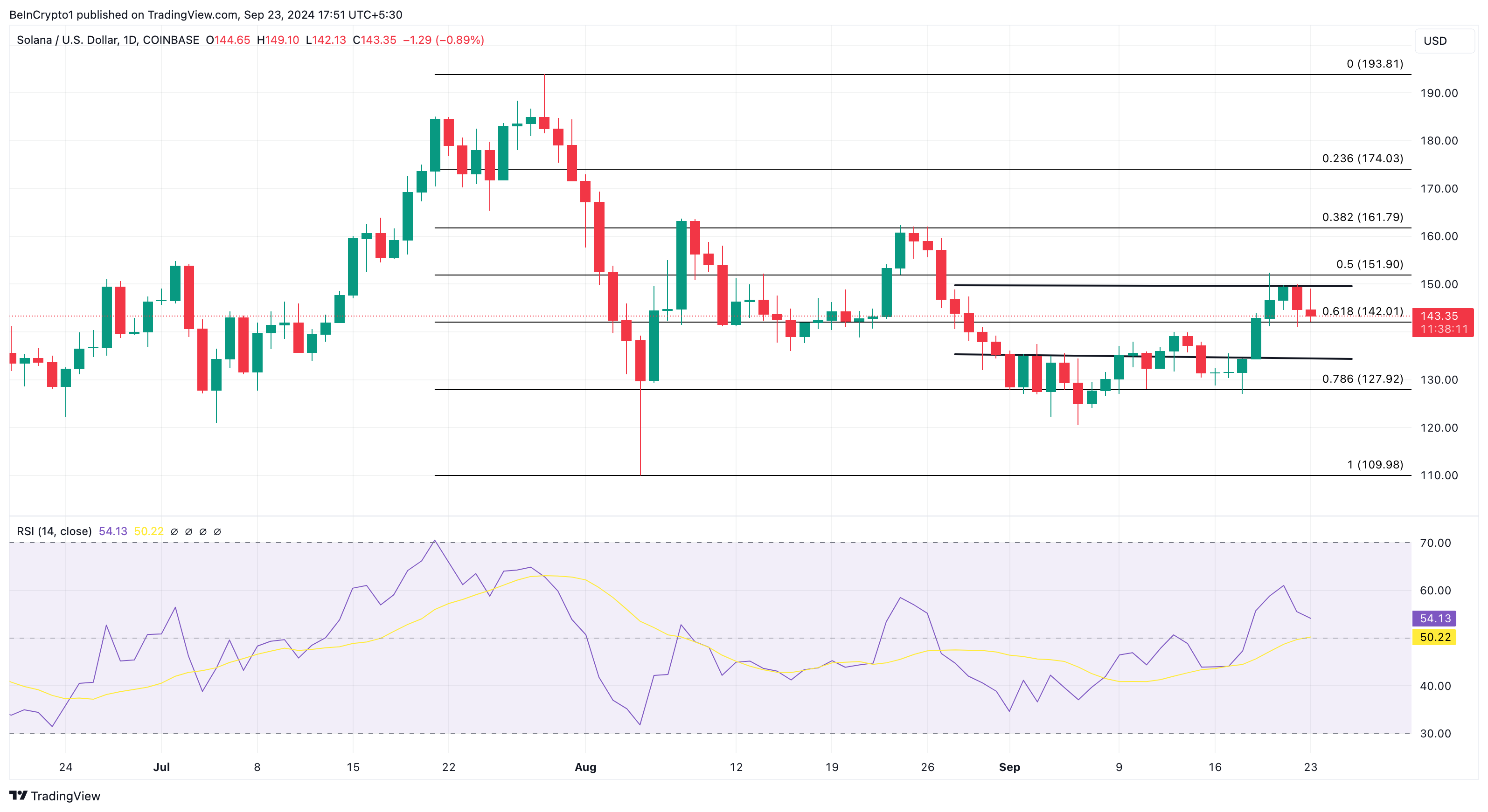 kuitenkin, jos härät onnistuvat murtamaan 150 dollarin vastuksen toisella yrityksellä, solanan hinta saattaa murtautua ja nousta kohti 161,74 dollaria.