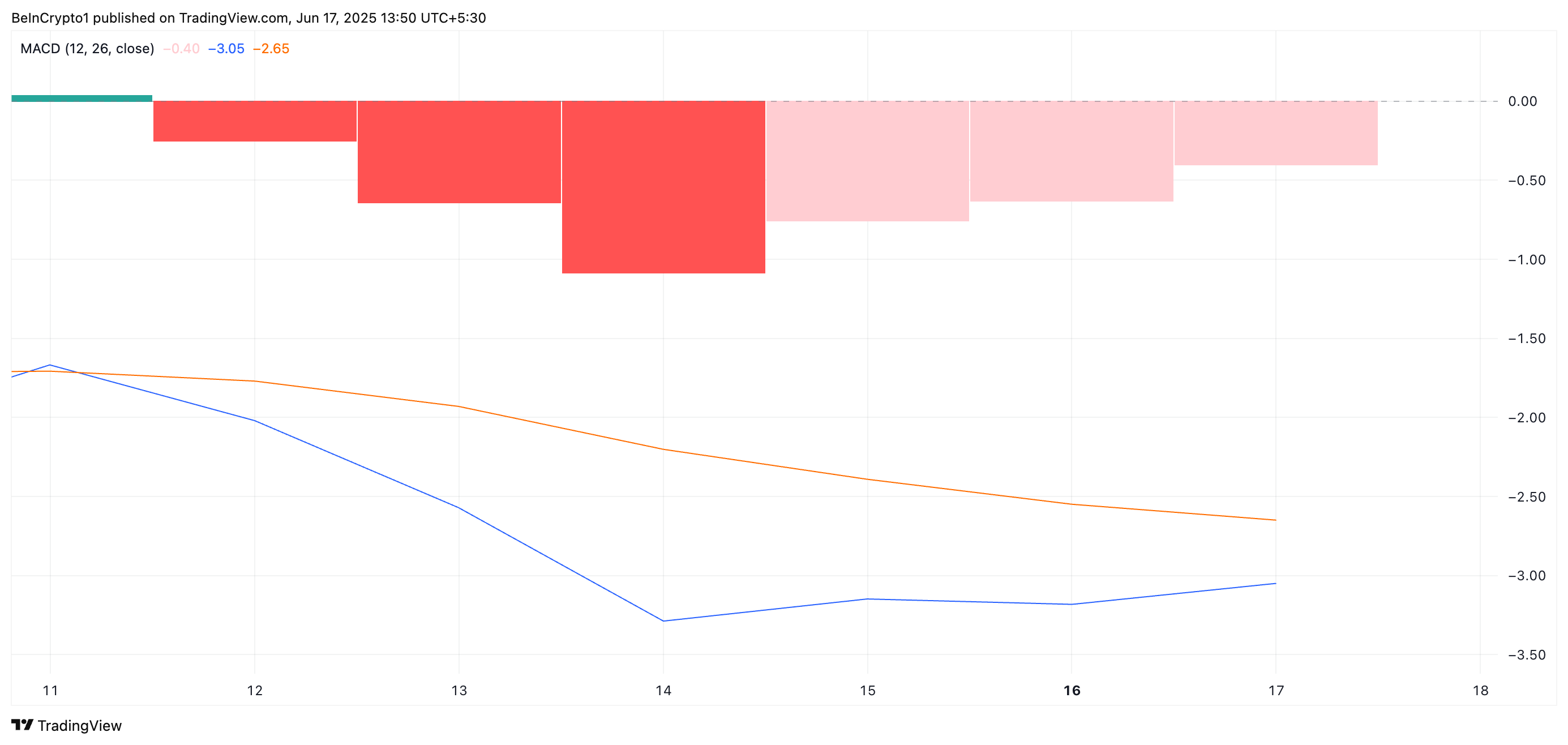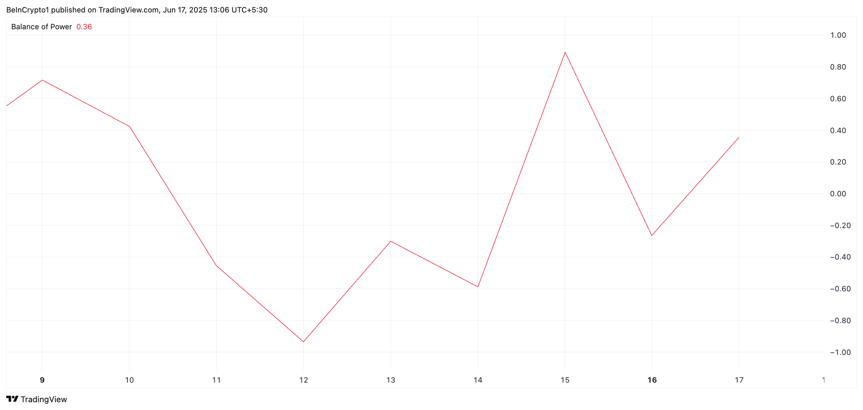 BOP-indikaattori mittaa ostajien ja myyjien voimaa vertaamalla hintakehitystä kaupankäyntisession aikana. Kun BOP on negatiivinen, se viittaa siihen, että myyjät hallitsevat markkinoita, mikä osoittaa karhujen tunnelmaa ja laskevaa hintapainetta.