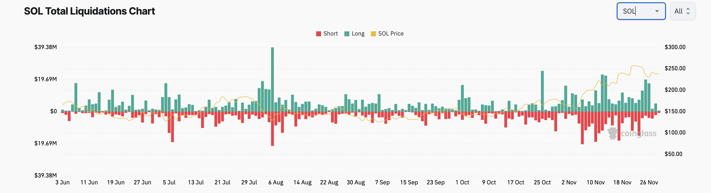 Viimeisen viikon aikana SOL:n 8 % hinnan lasku on pyyhkinyt pois 64 miljoonaa dollaria pitkistä positioista sen johdannaismarkkinoilta.