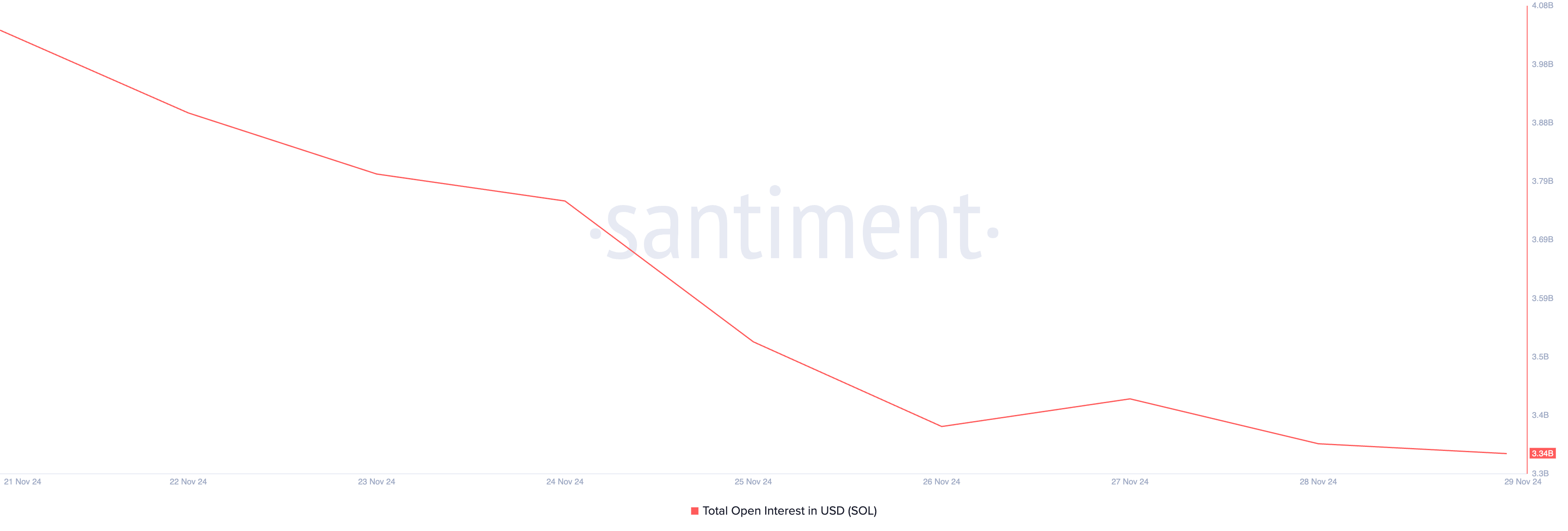 Erityisesti SOL:n hinnan lasku on johtanut merkittävään pudotukseen sen johdannaismarkkinoiden aktiivisuudessa. Tämä näkyy kolikon open interest -tunnusluvussa, joka on tällä hetkellä viikoittaisessa alimmassa arvossaan, 3,34 miljardia dollaria.