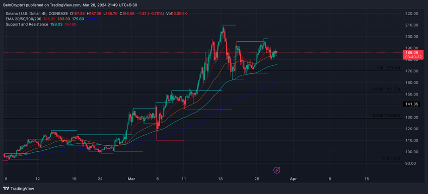 Jos Solana käy läpi korjauksen, se voi testata 167 dollarin tukitasoa. Jos SOL ei onnistu pitämään, seuraava mahdollinen tuki on $137. Jos nouseva vauhti kuitenkin jatkuu, tämä konsolidointi voisi toimia ponnahduslautana. Tämä mahdollisesti nostaisi SOLin takaisin matkalleen uuteen kaikkien aikojen korkeimpaan tasoon. Sen edellinen ennätys on 259,97 dollaria, joka saavutettiin marraskuussa 2021.