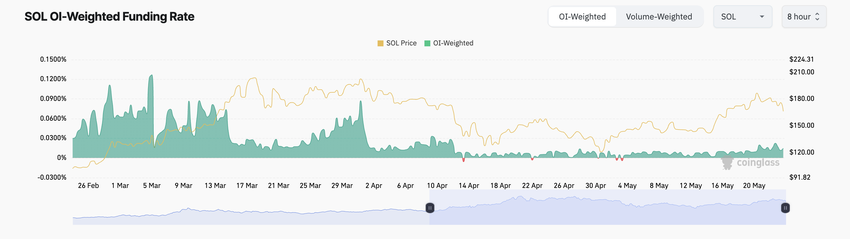 Mielenkiintoista on, että tästä huolimatta SOL-futuurikauppiaat vaativat edelleen pidempiä positioita. Sen rahoitusaste on pysynyt positiivisena, 0,014 prosentissa lehdistöhetkellä.