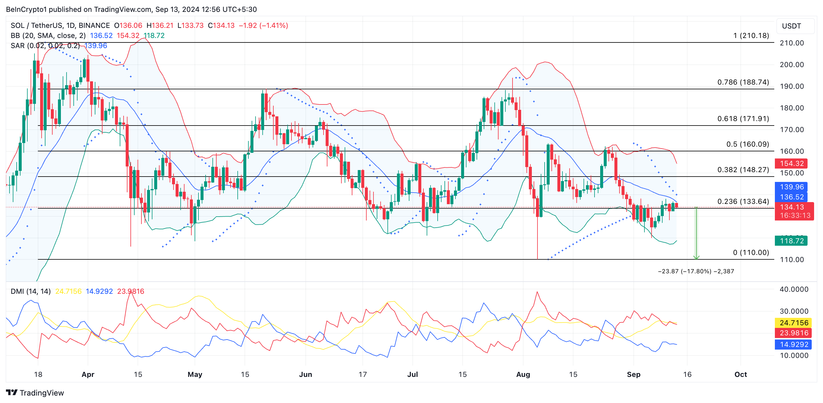 Jos tämä laskutrendi jatkuu, SOL saattaa rikkoa tukitason 133,64 dollaria, mahdollisesti laskien 110 dollariin. Jos tunnelma kuitenkin muuttuu positiiviseksi, härät saattavat puolustaa tukitasoa. Tämä mahdollistaisi SOL:n aloittavan nousutrendin kohti 160,90 dollaria.