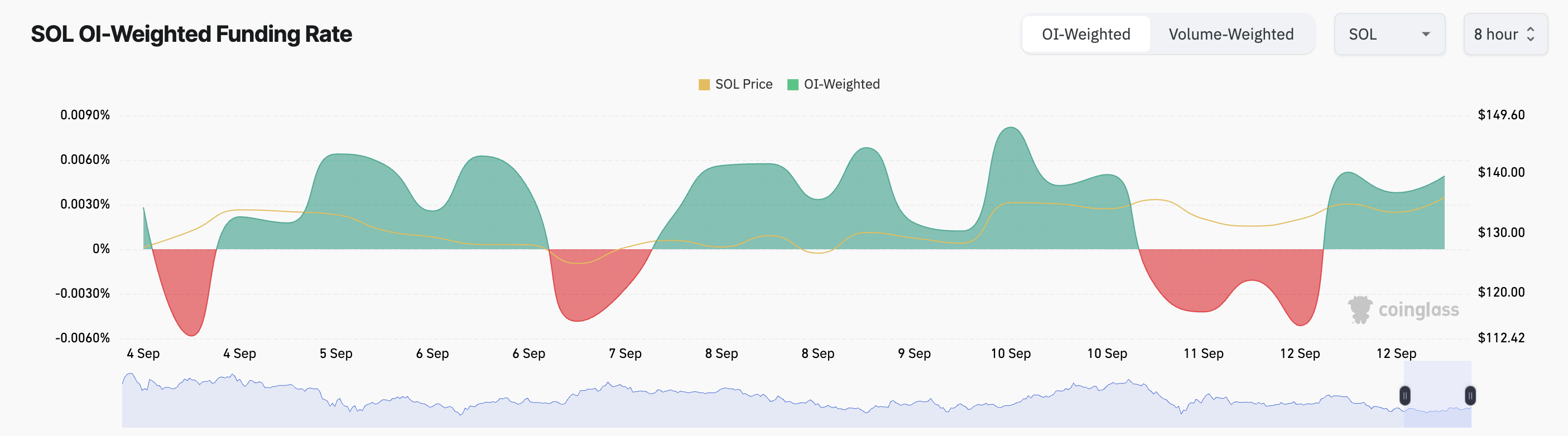 Kuitenkin ne, jotka vielä käyvät kauppaa, suosivat pitkiä positioita, kuten positiivinen rahoituskorko, tällä hetkellä 0,0049 %, osoittaa. Tämä korko, säännöllinen maksu sopimushinnan pitämiseksi lähellä spot-hintaa, viittaa siihen, että useammat kauppiaat odottavat SOL:n hintarallia kuin ne, jotka lyövät vetoa laskusta.