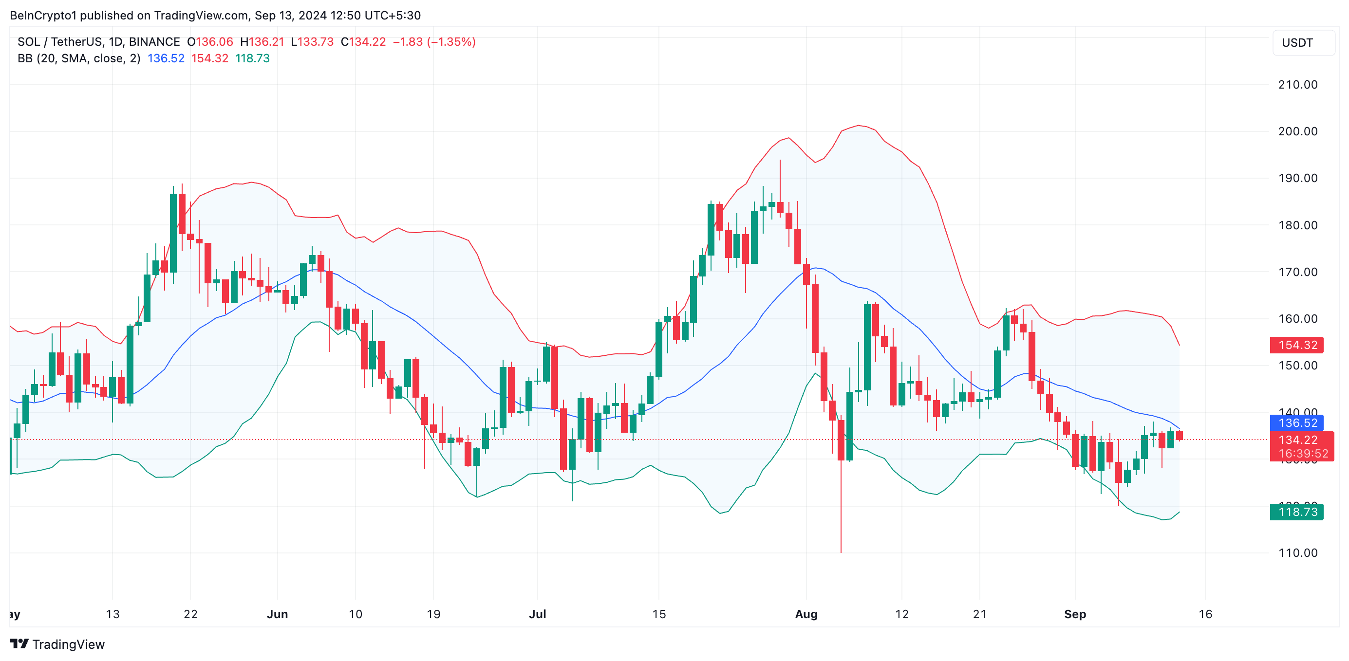 SOL:n markkinavolatiliteetin nousu on saattanut ajaa tähän siirtoon. SOL:n Bollingerin nauhat (BB), keskeinen volatiliteetin tunnusluku, tukevat tätä näkemystä. Ylä- ja alabändien, jotka mittaavat markkinoiden volatiliteettia, välinen kuilu on kasvanut viime kuukauden aikana.