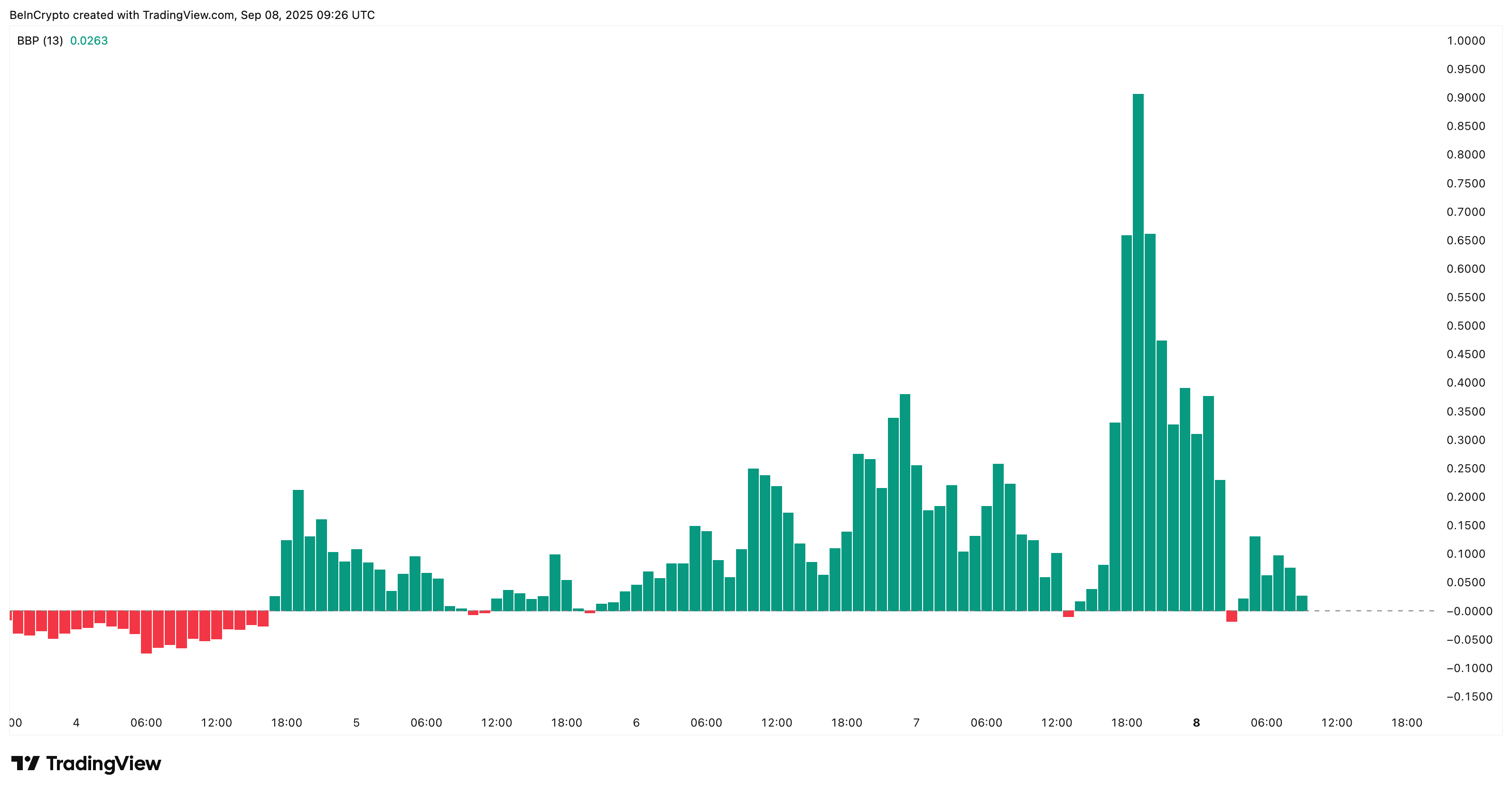 Tätä tukee bull-bear-voimaindikaattori — joka vertaa ostajien painetta myyjien paineeseen — on yhä positiivinen. Vaikka viimeaikainen vetäytyminen on tapahtunut, ostajat ovat vahvempia kuin myyjät, mikä antaa painoarvoa mahdolliselle uudelle läpimurrolle.
