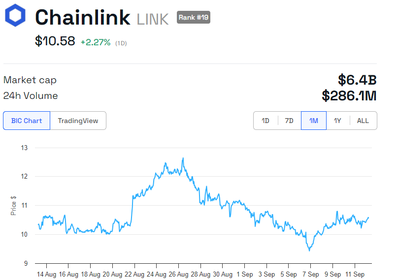 LINKin hinta on noussut lähes 15 % viime viikon aikana, ja se käy kauppaa tällä hetkellä 10,58 dollarissa. BeInCrypton mukaan hinta on noussut 2,27 % torstain istunnon alusta.