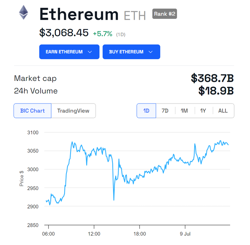 Markkinat ovat kuitenkin reagoineet myönteisesti kehitykseen. Kirjoitushetkellä Ethereumin (ETH) arvo on 3 068 dollaria, mikä heijastaa yli 5 %:n kasvua viimeisen 24 tunnin aikana.