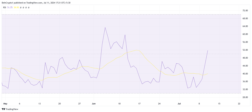 STX:n hinta on noussut merkittävästi viime päivinä, mikä on nostanut altcoinin usean viikon korkeimmalle tasolle. Näin ollen STX:n suhteellinen voimaindeksi (RSI) osoittaa nousuvauhdin merkkejä ensimmäistä kertaa kuukauteen.
