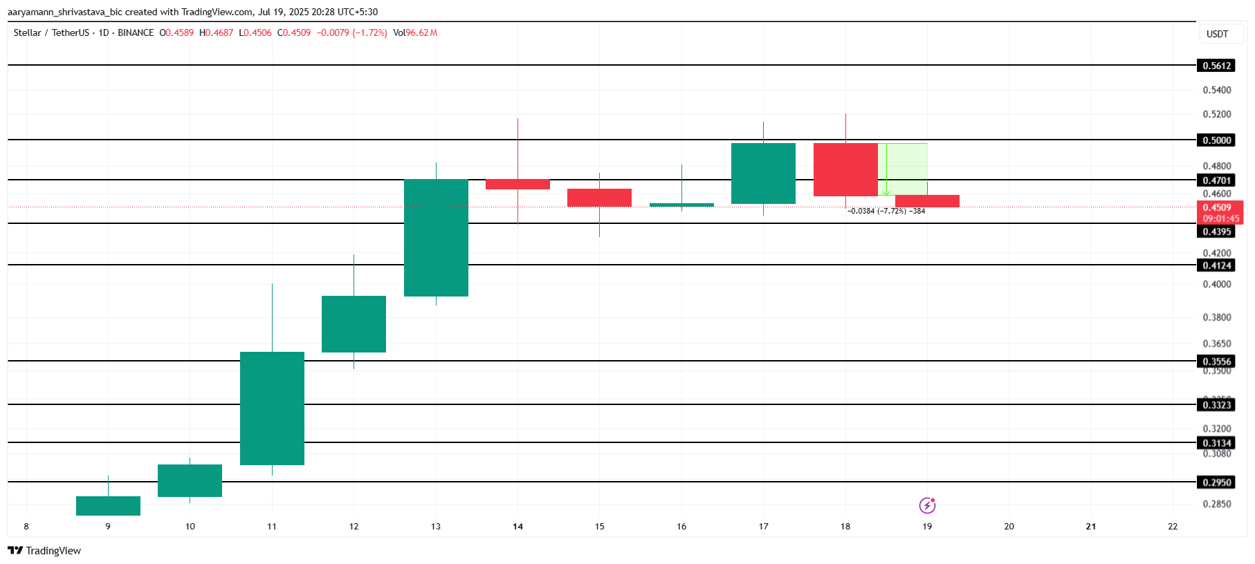 Stellar (XLM) koki äskettäin voimakkaan hintarallin, joka nosti altcoinin hinnan korkeammalle tasolle. Viime viikolla hinta on kuitenkin kohdannut merkittävää konsolidoitumista. Mahdollisen käänteen merkit ovat yhä selvempiä, kun altcoin kamppailee murtaakseen kriittisen 0,50 dollarin vastustason.