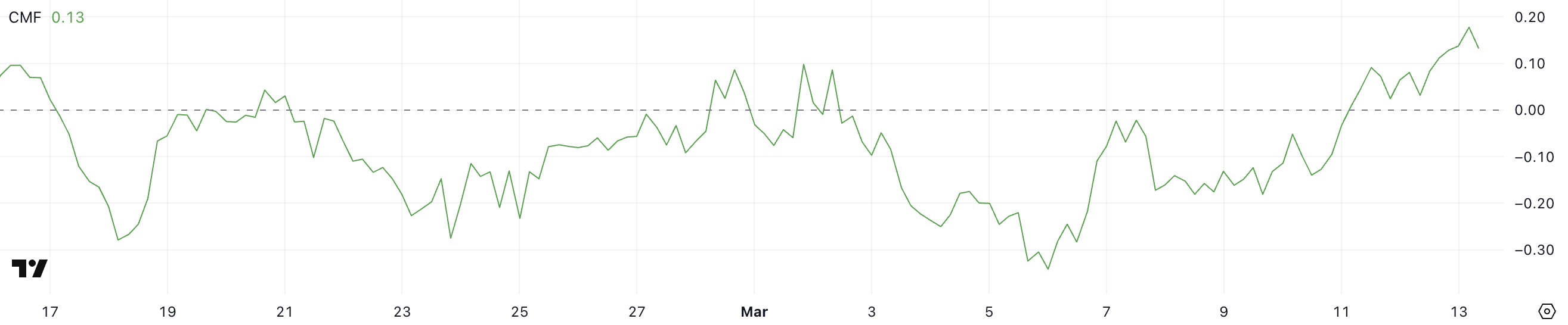 Positiivinen CMF-arvo viittaa siihen, että ostopaine on hallitseva, kun taas negatiivinen lukema osoittaa voimakkaampaa myyntiaktiivisuutta.