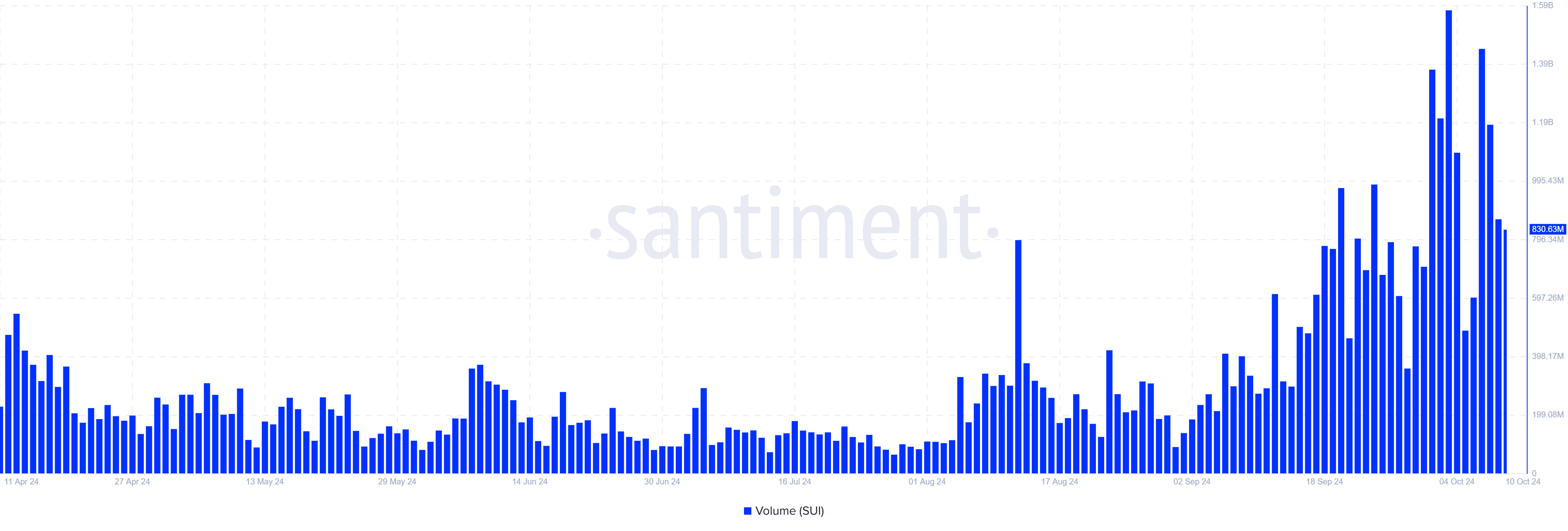 SUI:n kokonaiskauppavolyymi on kokenut jyrkän laskun, pudoten 30 % viimeisen 48 tunnin aikana. Laskiessaan 1,1 miljardista dollarista 830 miljoonaan dollariin, laskeva kauppavolyymi viittaa SUI:n omistajien osallistumisen vähenemiseen. Tämä merkittävä lasku viittaa siihen, että kiinnostus altcoiniin on hiipumassa, mikä lisää negatiivista tunnelmaa omaisuusvaran ympärillä.