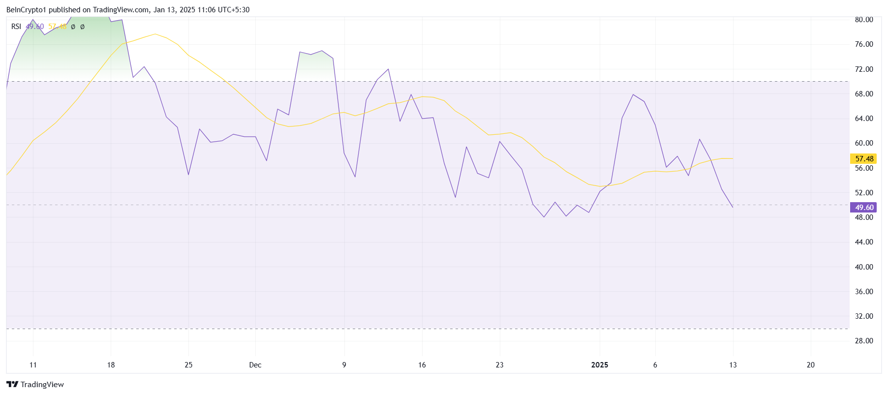 RSI:n asema härkäalueella osoittaa tasaista ostopainetta, joka voi toimia esteenä lisälaskuille. Jos indikaattori säilyttää nykyisen tasonsa tai nousee, se voi vahvistaa SUI:n mahdollisuuksia palauttaa viimeaikaiset tappionsa ja tavoitella uutta ATH:ta.