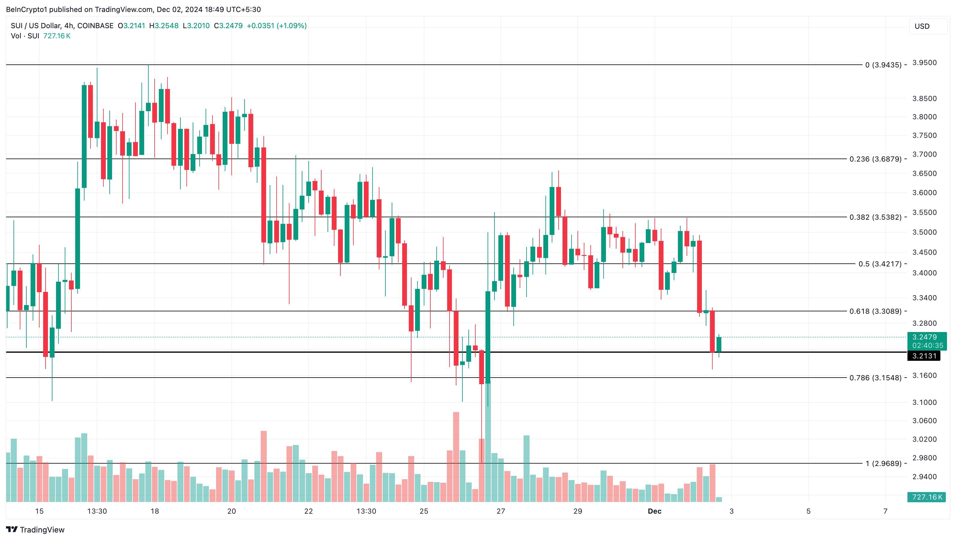 Tämä hinta on 17 % alhaisempi kuin sen kaikkien aikojen korkein, jonka se saavutti 17. marraskuuta. Toipuuko SUI ja nouseeko yli 4 dollaria?