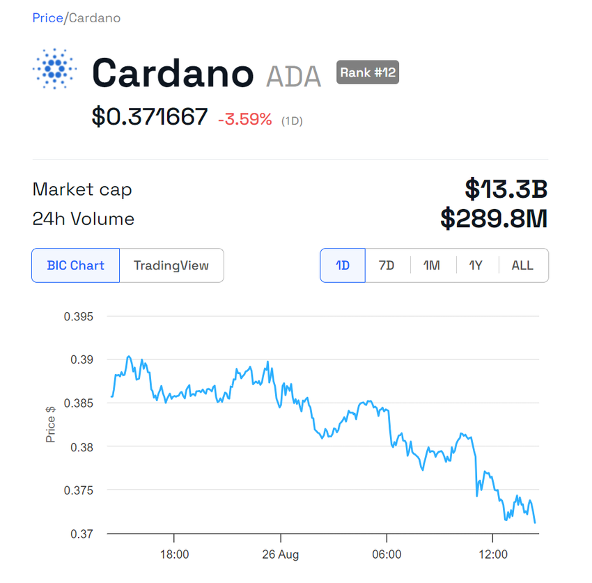 Odottaessaan kovaa haarukkaa, Cardanon natiivi token, ADA, on osoittanut positiivista suorituskykyä, 12,1 %:n kasvulla viime viikon aikana. Kirjoitushetkellä ADA:n hinta on 0,37 dollaria.