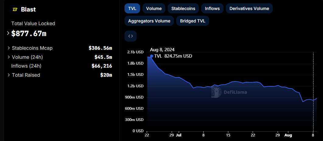 Blastin kokonaisarvo lukittuna (TVL) on kasvanut 52,92 miljoonaa dollaria torstaista lähtien. Tämä pääoma saattaa kuitenkin vähentyä, kun elokuun 15. päivän määräaika lähestyy.