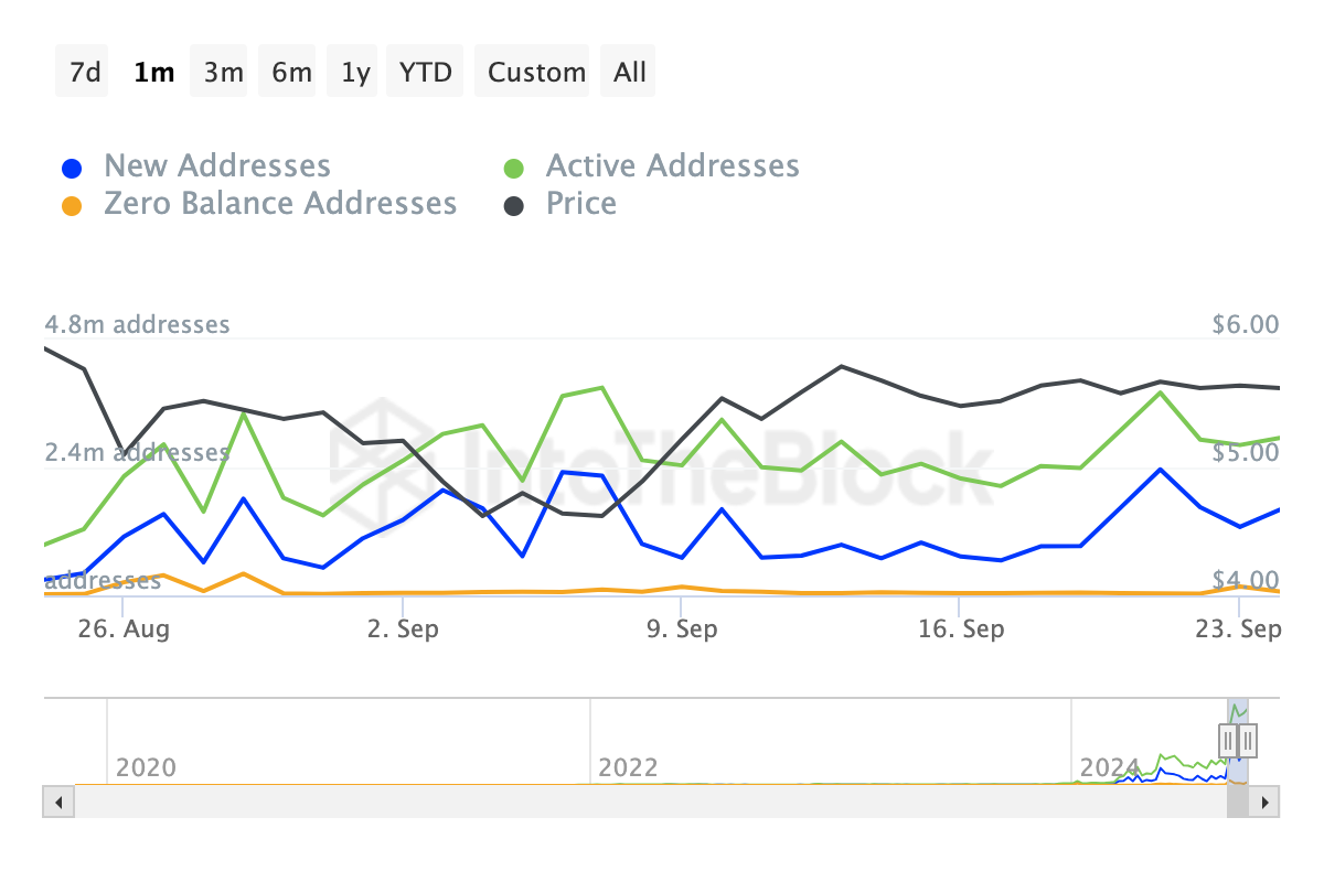 Seurauksena, ketjutietojen mukaan uusien, aktiivisten ja nollasaldon osoitteiden määrä TON:ssa on merkittävästi kasvanut. Tämä kokonaiskasvu viittaa siihen, että TON-ekosysteemi valmistautuu tapahtumaan, mikä voisi lisätä merkittävästi kryptovaluutan kysyntää.
