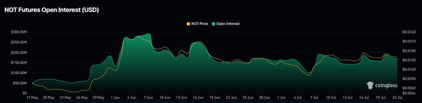 Lisäksi Notcoinin avoin korko on edelleen 171 miljoonaa dollaria, eikä se osoita laskun merkkejä. Tämä Open Interestin vakaus viittaa siihen, että sijoittajat säilyttävät asemansa ja luottavat omaisuuserän potentiaaliin.