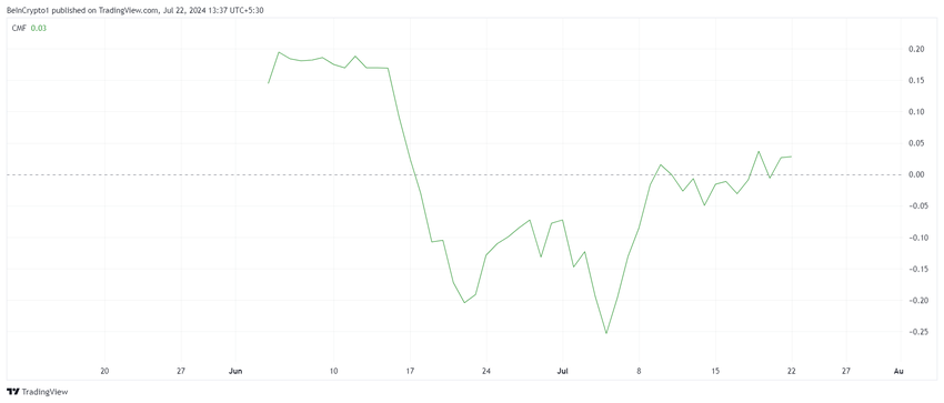 Telegram Coin Notcoinin hinta ei ole puhjennut useisiin kaupankäynti-istuntoihin. Tämä ei kuitenkaan häiritse NOT-haltijoita, kuten heidän käyttäytymisensä osoittaa. Merkkejä tästä voidaan nähdä Chaikin Money Flow’ssa (CMF).