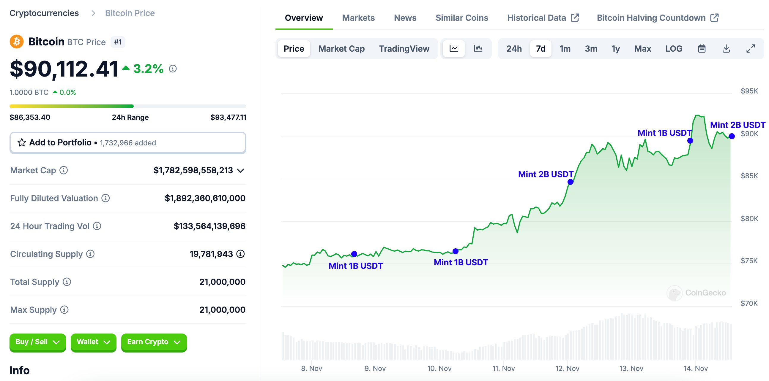 Lisäksi alkuperäinen 3 miljardin USDT:n luonti 12. marraskuuta ajoittui yhteen Bitcoinin 85 000 dollarin rikkoutumisen ja myöhemmin 90 000 dollarin kynnyksen ylittämisen kanssa.