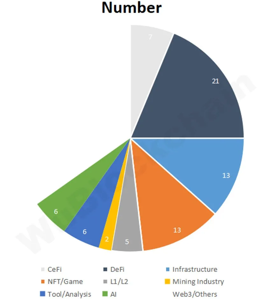 “Kryptomarkkinoiden eri toimialoista tammikuussa infrastruktuurihankkeiden rahoitusosuus oli noin 12 %, DeFi noin 19 %, CeFi noin 6 %, NFT/GameFi noin 12 % ja L1/L2 noin 4 %”, totesi toimittaja Colin Wu raportissaan.