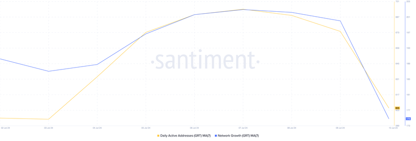 Tokenin verkkotoiminnan arviointi paljastaa, että GRT:n haltijat ovat alkaneet ostaa dippiä. Sen päivittäinen aktiivisten osoitteiden määrä seitsemän päivän liukuvan keskiarvon avulla on kasvanut 13% viimeisen viikon aikana.