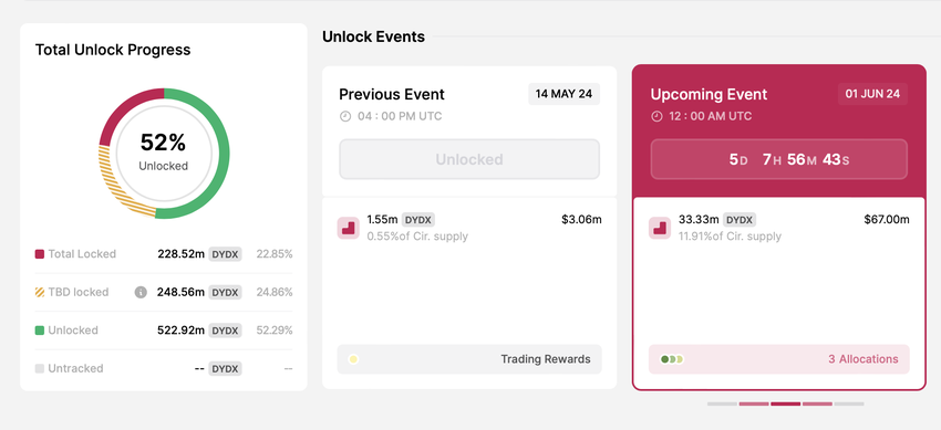 - Avattujen tokenien määrä: 33,33 miljoonaa DYDX