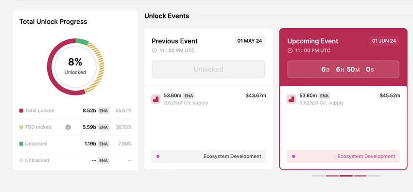 31. toukokuuta hanke lisää yli 30 miljoonaa toimenpideohjelmaa kiertävään tarjontaan. TokenUnlocksin mukaan jakelu jakaa nämä rahakkeet sijoittajille ja ydinavustajille.