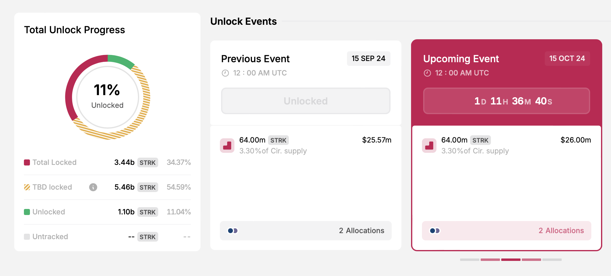 15. lokakuuta hankkeessa vapautetaan 64 miljoonaa STRK-tokenia, jotka jaetaan sijoittajille ja varhaisille avustajille.
