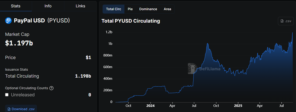 Yksi merkittävimmistä merkeistä tästä muutoksesta on PayPalin PYUSD-stablecoinin nousu, joka on ylittänyt miljardin dollarin markkinatarjonnan ja on kokonaan liikkeeseen laskettu Ethereumilla.