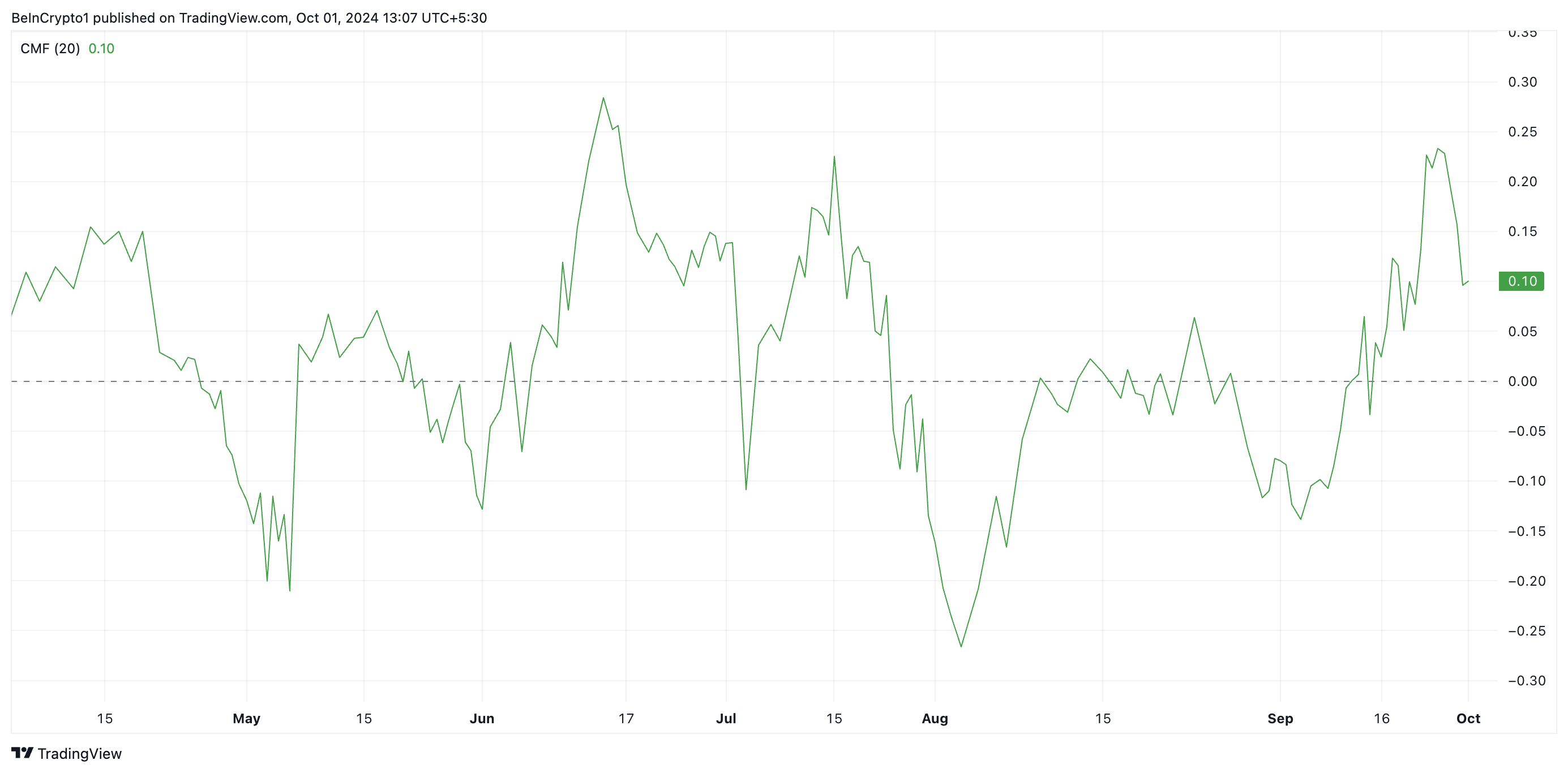 Sen laskevaan suuntaan kääntyvä Chaikin Money Flow (CMF) -indikaattori vahvistaa markkinaosallistujien kysynnän laskun Toncoinille. Tätä kirjoitettaessa indikaattori on 0,10. Vaikka se on edelleen positiivinen, laskeva CMF viittaa siihen, että ostovoima heikkenee. Se osoittaa, että vähemmän varoja virtaa TON-markkinoille, kun voitonotto vahvistuu.