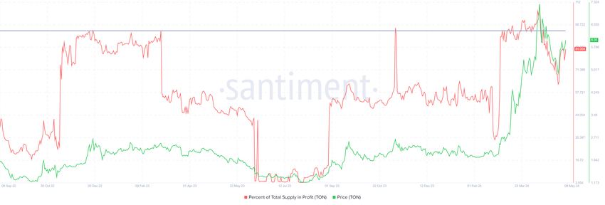 Sijoittajat havaitsivat huomattavia voittoja Toncoinin hinnan äskettäisen rallinvuoksi, mikä on pitänyt heidän optimisminsa yllä. Kryptovaluutta saattaa kuitenkin olla lähellä kääntymistä, mikä johtaa konsolidointiin tai korjaukseen.