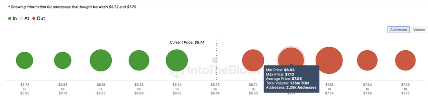 Tämä tarkoittaa, että jos TON:n hinta jatkaa nousuaan ja saavuttaa vähintään 6,93 dollaria, nämä osoitteet saattavat asettaa merkittävän myyntitilauksen, mikä voi aiheuttaa hinnan laskun.