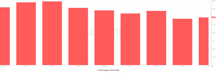Heinäkuun 25. päivänä Toncoinin tarjonta pörsseissä oli hieman alle seitsemän miljoonaa. Mutta kirjoitushetkellä luku oli noussut 7,32 miljoonaan. Tämän tunnusluvun kasvu viittaa siihen, että sijoittajat lähettävät enemmän tokeneita pois omasta säilytyksestä, mikä viittaa mahdolliseen myyntipaineeseen.