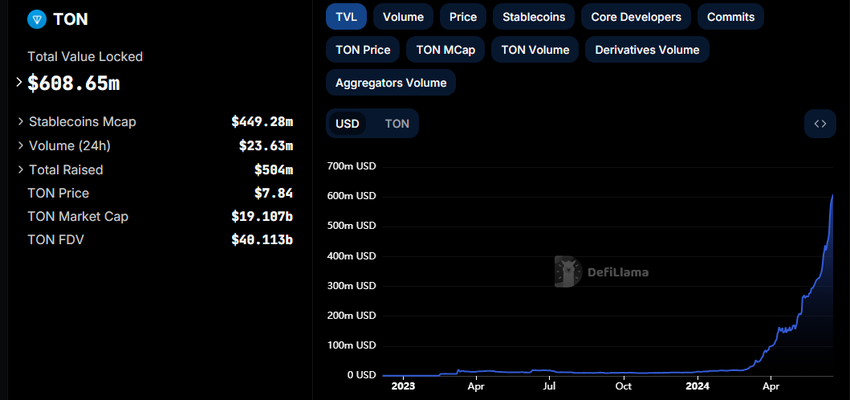 Viimeisen kuukauden aikana TON-lohkoketjun Total Value Locked (TVL) on yli kaksinkertaistunut 608 miljoonaan dollariin.